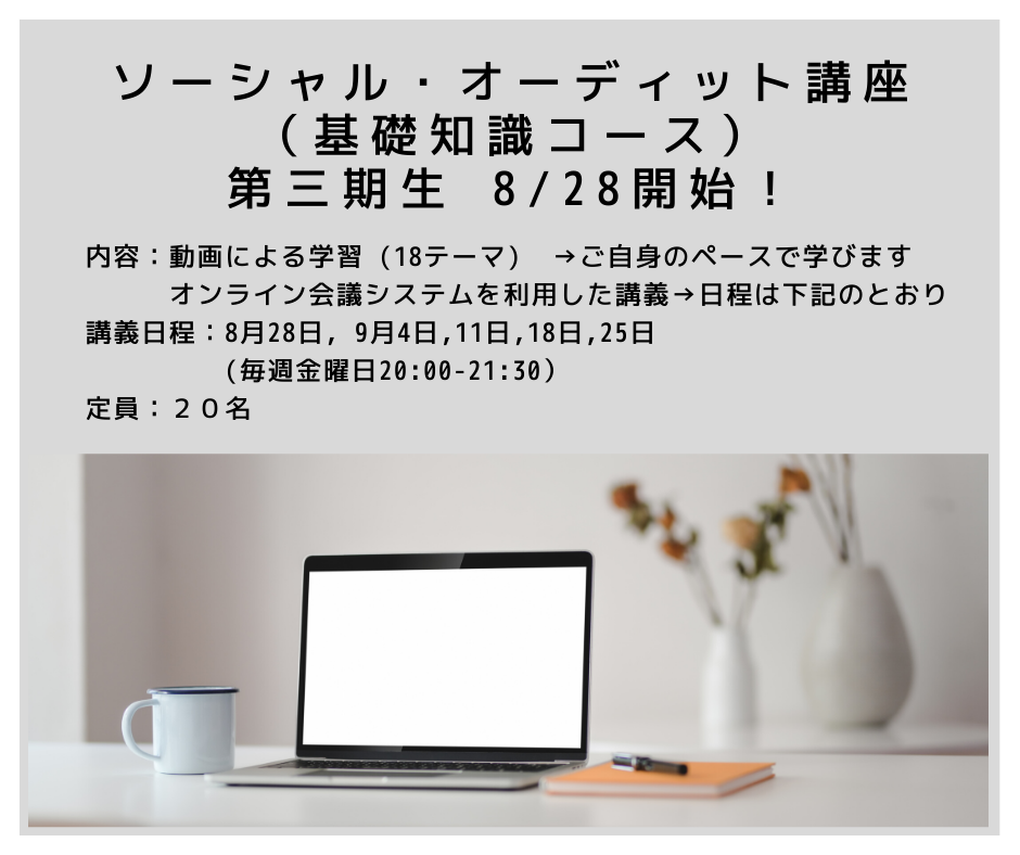 ソーシャル・オーディット基礎講座:3期生募集! 8/28講座スタート!