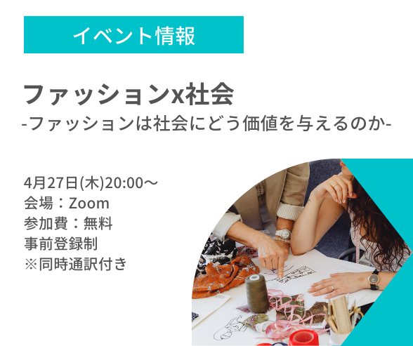 4月27日20:00~ トークセッション:ファッション x 社会 -ファッションは社会にどう価値を与えるのか-