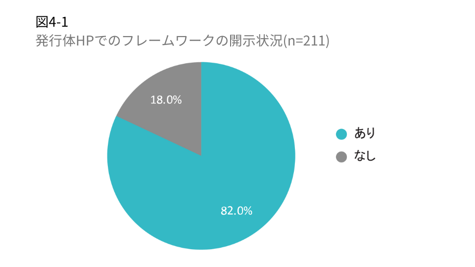 今回調査対象の発行体が自身のホームページでフレームワークを開示している割合は82.0%であった。