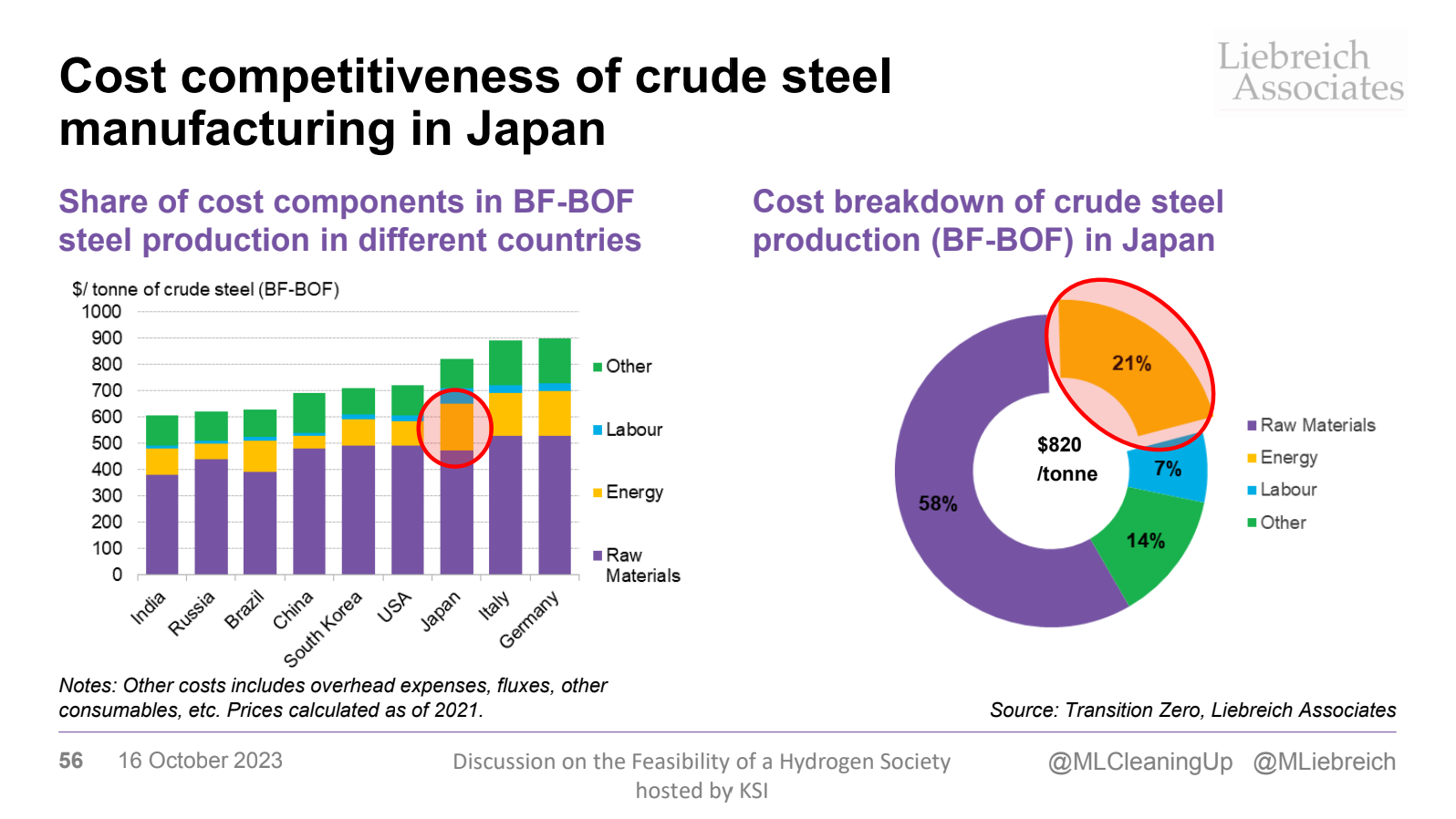 製品や競争力にどう影響があるかを考えてみてください。私が(日本の製鉄の方向性について)具体的な答えを持っているわけではありません。しかし、国内で安くてクリーンなエネルギーを確保できないところでは、粗鋼では競争せず、付加価値の高い鉄鋼を作るようにした方が賢明かもしれません。(リーブライク氏)