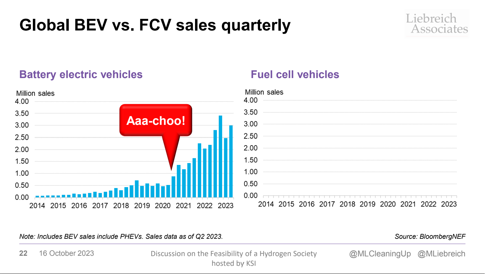 世界のバッテリー式電気自動車と燃料電池自動車の四半期ごとの販売台数 © Liebreich Associates